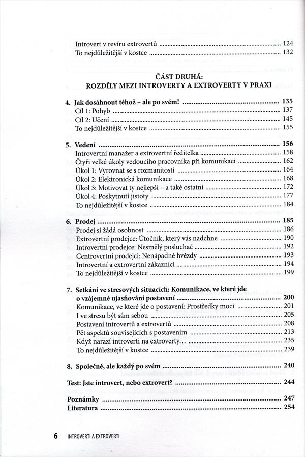 Kniha popisuje hlavní rysy introvertních a extrovertních osobností, zabývá se otázkou úspěšné komunikace mezi nimi a nastiňuje další, smíšený psychologický typ - centroverty.