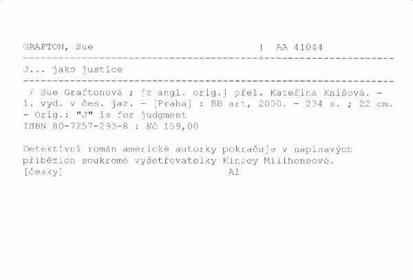 | Autor | Sue Graftonová ; [z angl. orig.] přel. Kateřina Knišová |
