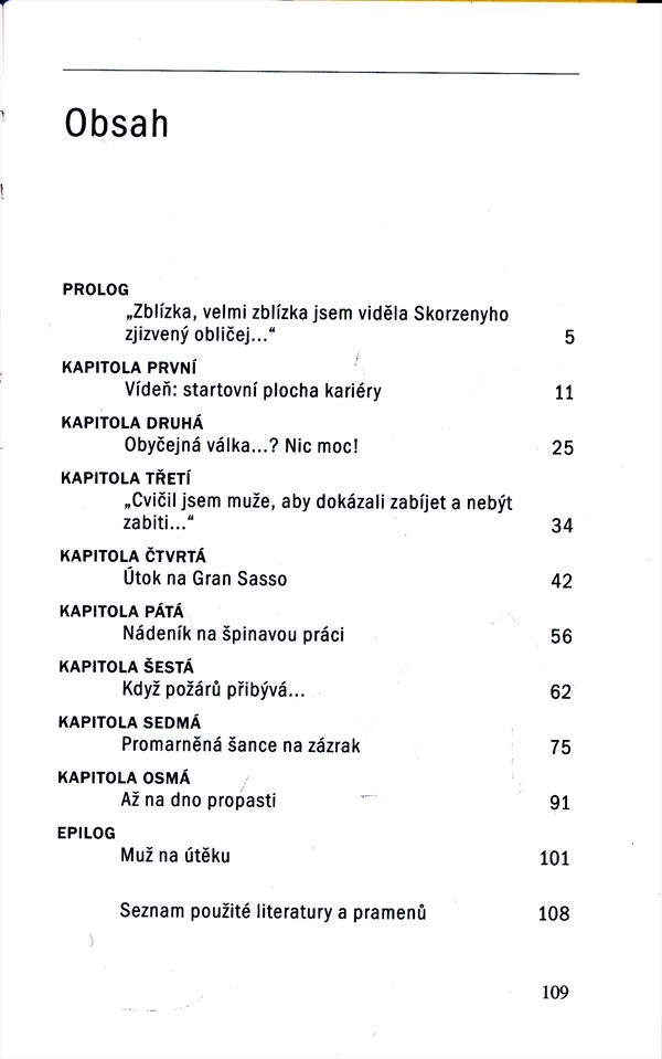 Známý autor z oblasti literatury faktu nám předkládá rozsahem sice nevelký, avšak velice čtivý životopis Hitlerova oblíbence Otty Skorzenyho. Největší část práce se zaměřuje na Skorzenyho život během druhé světové války: jeho žádost o vstup do německého letectva byla zamítnuta a Skorzeny se přihlásil do jednotek Waffen SS. Skorzeny byl za druhé světové války pověřen tajnými operacemi (např. osvobození B. Mussoliniho r. 1943, plánování zabití Josipa Broze Tita nebo únos syna admirála Horthyho). Pouze okrajová pozornost je věnována Skorzenyho životu po válce, kdy po útěku z amerického zajetí pobýval např. ve Francie, Egyptě nebo Španělsku, kde roku 1975 zemřel. Text je doplněn fotografiemi.
