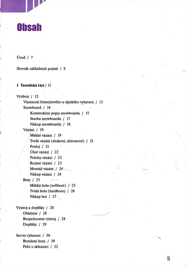 Příručka rozdělená do 24 částí: od základního popisu se dostává až k samotné jízdě. Důležitá část týkající se vybavení obsahuje přehled výzbroje snowboardisty s popisem, co a jak nakupovat. Každý prvek jízdy na snowboardu je podrobně popsán a doplněn o tabulku chyb, ke kterým může dojít a o několik tipů, jak zdokonalit jízdu. Kniha je doprovázena velkým množstvím barevných fotografií.