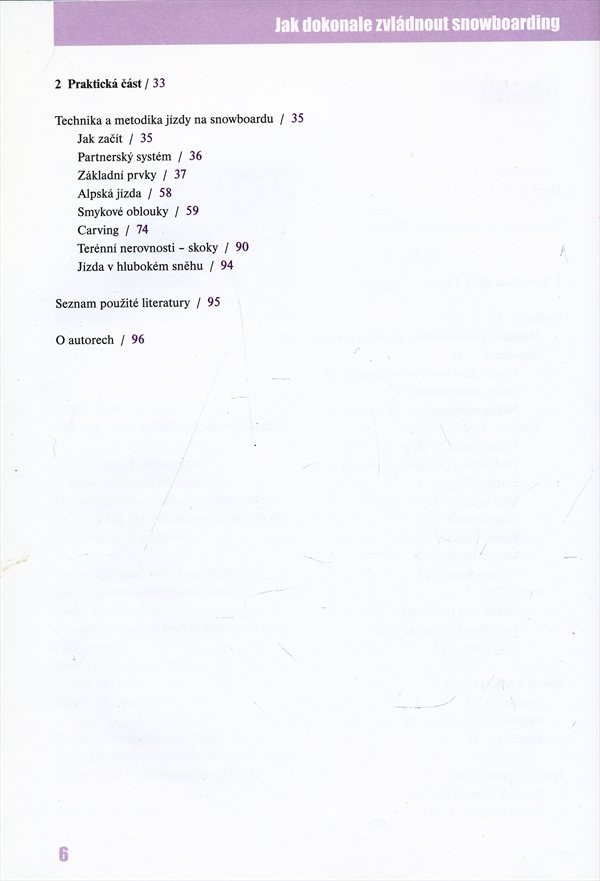 Základy jízdy na snowboardu - jak vybrat vybavení, základní technické prvky, smykové oblouky a carving, jízda v hlubokém sněhu, skoky.