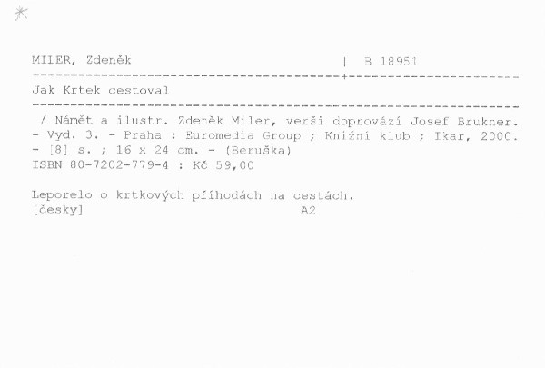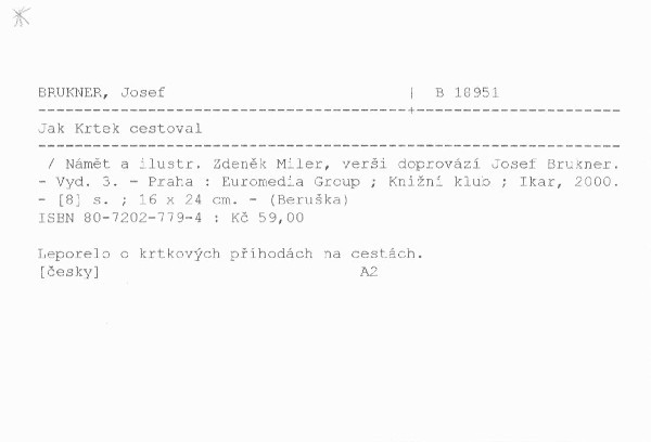 | Autor | Námět a ilustr. Zdeněk Miler, verši doprovází Josef Brukner |