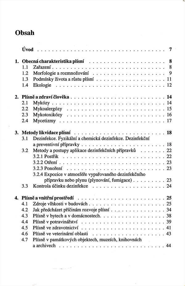 Příručka určená nejširší veřejnosti seznamuje s druhy plísní, s metodami likvidace (fyzikální a chemická dezinfekce),preventivními přípravky a s metodami aplikace těchto přípravků. Samostatná kapitola se zabývá vztahy mezi vnitřním prostředím budov a vznikem plísní. Součástí je seznam přípravků určených k likvidaci a k prevenci plísní v různém prostředí a na nejrůznějších materiálech. Odborné výrazy jsou vysvětleny v závěru příručky, stejně jako seznam zkratek, symbolů a jednotek užívaných v textu.