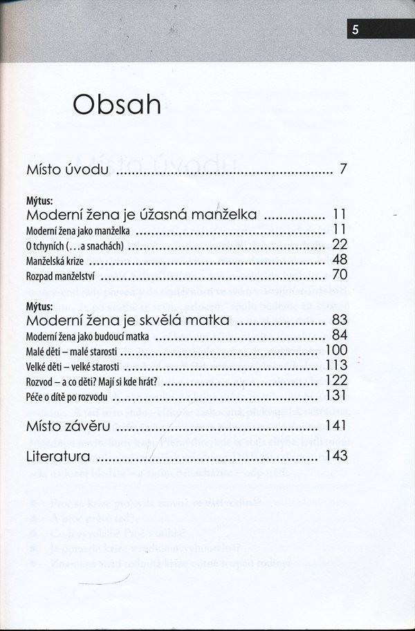 Příručka se zaměřuje na dva základní problémy, se kterými se potýkají moderní ženy - manželské krize a mateřství. Jako východisko zde slouží moderní mýty o ženách coby dokonalých manželkách a skvělých matkách. Pokud ženy podlehnou těmto mýtům, mohou býti dosti tvrdě zaskočeny realitou. Ne vždy partnerský život v manželství funguje tak, jak by si člověk přál. Objevují se manželské krize, dochází ke sporům mezi snachou a tchyní, vše může vyvrcholit i rozpadem manželství a rozvodem. V souvislosti s druhým mýtem o radostech mateřství bývají zase opomenuty některé stinné stránky, které narození a posléze i výchova potomka přinášejí. Na co vše je třeba si dát pozor, jak předcházet rodinným a manželským krizím, případně jak je řešit s co nejméně bolestnými následky, to vše se snaží shrnout autorka ve své knize, určené především ženám. Kniha volně tematicky navazuje na autorčinu předchozí knihu Jak řeší krize moderní žena, kde již byly nastíněny některé základní mýty a problémy moderních žen.