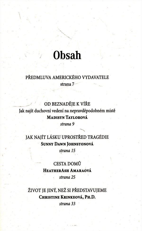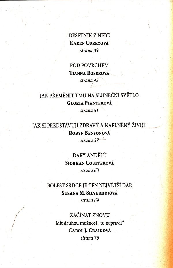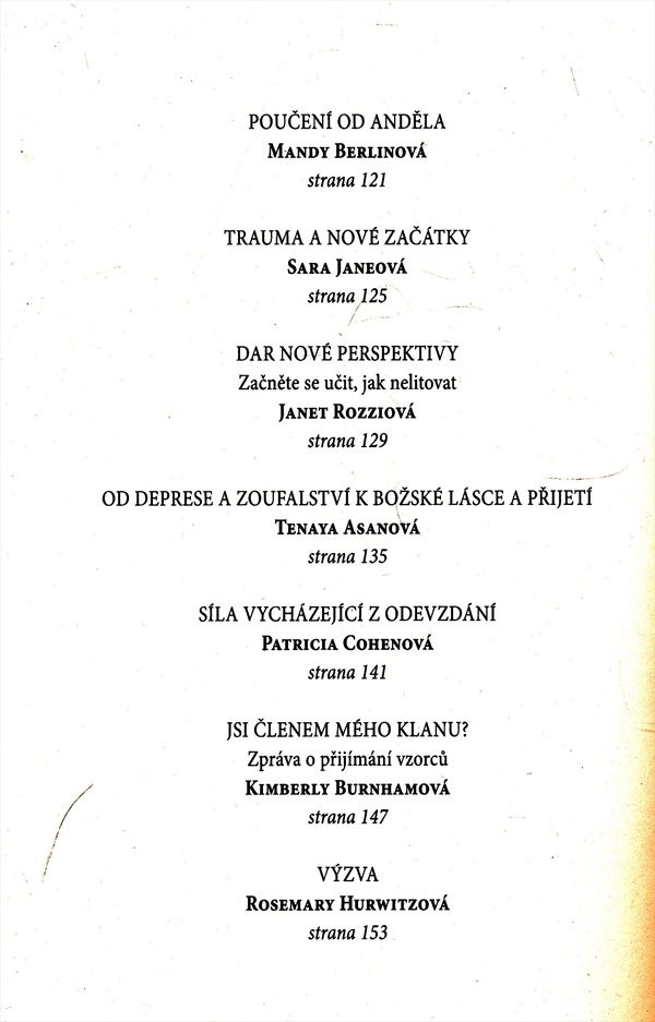 Američtí autoři vyprávějí o nejobtížnějších okamžicích svého života, kdy prožívali nemoc, ztrátu blízké osoby a jiné závažné problémy. Přesto právě v těch nejtěžších chvílích často našli jakýsi nový impulz, který jim pomohl krizi překonat a dosáhnout jakési duchovní obrody. Ukázalo se, že i to zdánlivě nejčernější a nejbeznadějnější v životě mělo svůj smysl.