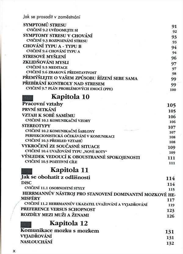Příručka radí, jak sebejistě komunikovat, upevňovat pracovní vztahy nebo poznat sám sebe. Součástí knihy jsou i dotazníky a testy.