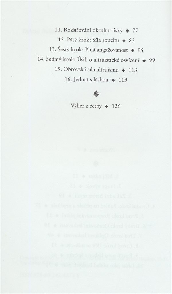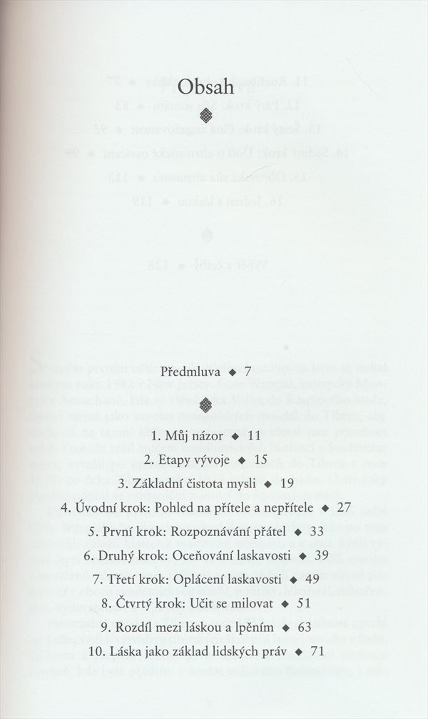 Knížka shrnující zkušenosti Jeho Svatosti dalajlámy jak rozvíjet lásku, štěstí a osvícení, jež se mají rozšířit na celé lidstvo.