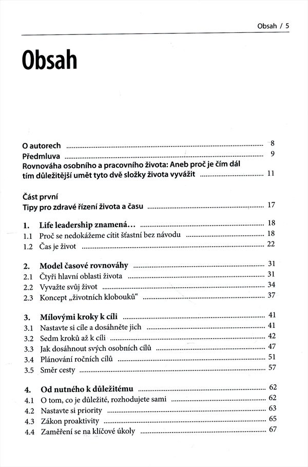 Problematika life leadershipu: autoři radí, jak využít dlouholetých osobních a profesních zkušeností jako pomůcky k důkladné inventuře svého života a poté zvolit jasné zaměření na zvolené osoby a věci. Doplněno četnými kontrolními testy.