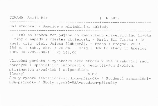 Užitečná pomůcka o vysokoškolském studiu v USA obsahující řadu obecných i speciálních informací o jednotlivých školách, přijímacích zkouškách i stipendiích.