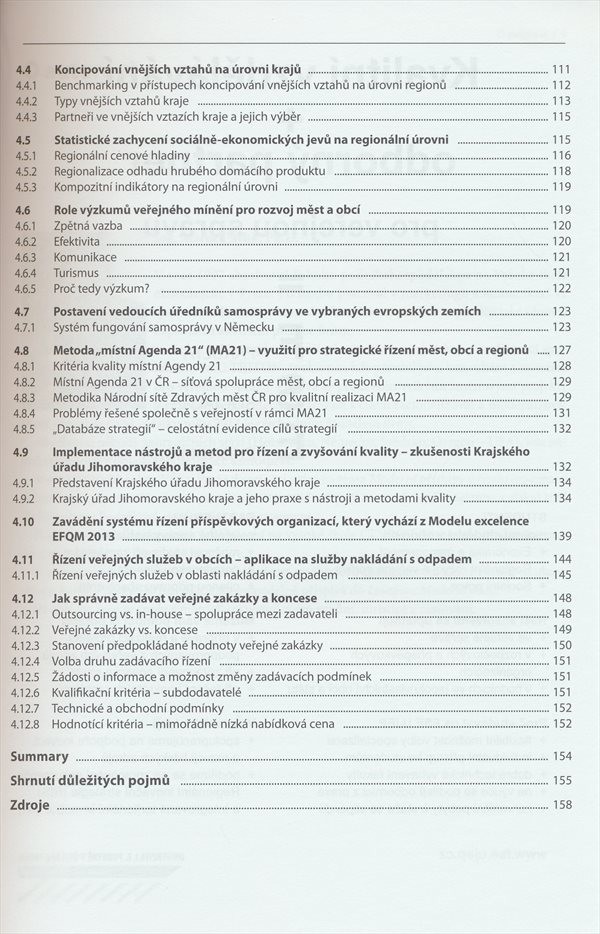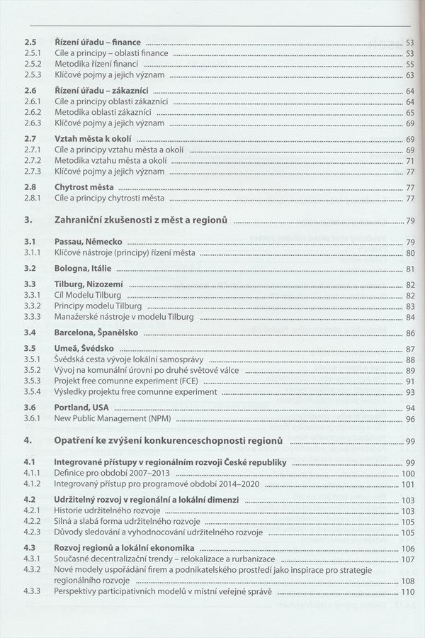 Přehled metod zaměřených na efektivní řízení obce a také nezbytných opatření k rozvoji konkurenceschopnosti českých regionů. Součástí textu jsou také zkušenosti z řízení obcí a regionů v zahraničí.