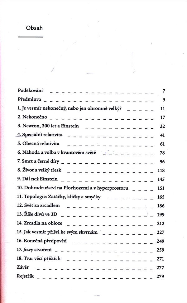 Jedinečná vědecká práce postihující mnoho nových poznatků v oblasti výzkumu globální podoby vesmíru se snoubí s intimní životní výpovědí mladé vědkyně, která se snaží skloubit citový život s odtažitou vědeckou kariérou. Ve svých teoriích z různých oblastí vědy (kosmologie, astrofyzika, topologie, geometrie, relativita...) autorka naráží na obecně uznávaný názor, že vesmír je nekonečný a snaží se ho vyvrátit. Kniha je psaná ve formě stylizovaných dopisů matce v podobě deníku, což přispívá k její čtivosti a přístupnosti. Publikace plná inspirujících myšlenek a okouzlujících úvah je určena nejen odborné veřejnosti, ale spíše všem lidem, kteří hledají odpovědi na otázky o vesmíru a roli lidí v něm.
