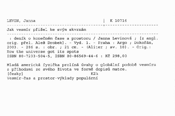 | Autor | Janna Levinová ; [z angl. orig. přel. Aleš Drobek] |
