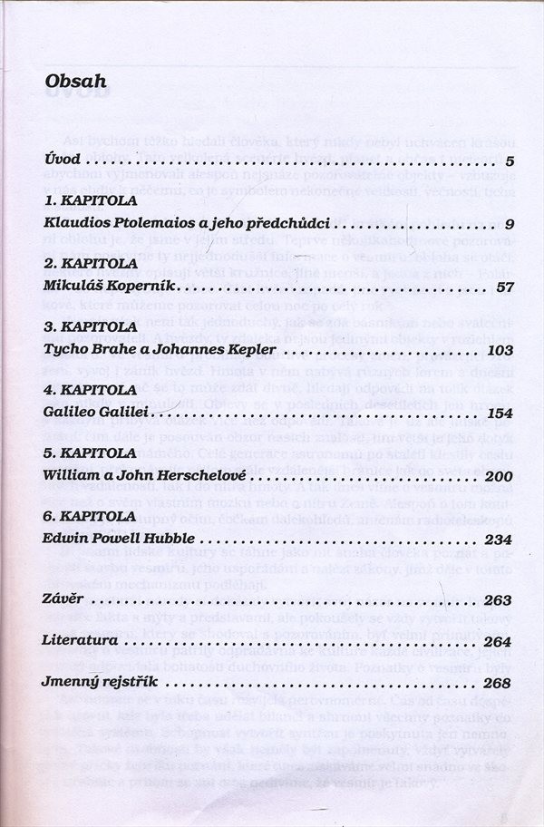 Kniha obsahuje portréty vůdčích postav historické astronomické tradice, které svým novátorským myšlením zcela zásadně přispěly a ovlivnily rozvoj vědního bádání o vesmíru. Vedle životopisných údajů a historických souvislostí podává autor rozbory jednotlivých teorií, vzájemně je srovnává a poukazuje na jejich význam pro rozvoj astronomie jako důležité vědní disciplíny. Kniha v závěru obsahuje podrobný seznam odborné literatury a jmenný rejstřík.