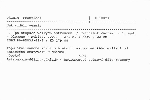 | Název | Jak viděli vesmír |