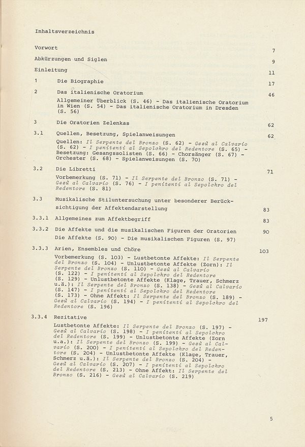 Publikace na základě dizertační práce z poloviny 80. let německé historičky Susanne Oschmann na univerzitě v Kolíně nad Rýnem je výsledkem pečlivého zhodnocení přímých i souvisejících hudebních pramenů. Je vybavena aktualizovaným životopisem skladatele a hudebními rozbory notového textu i libret. Autorka se pokouší rekonstruovat funkční a provozní aspekty vokální i instrumentální složky jmenovaných oratorií na pozadí dobové afektové teorie. Její součástí je rozsáhlá bibliografie k Zelenkově osobnosti a odkazy na další relevantní literaturu k tématu.
