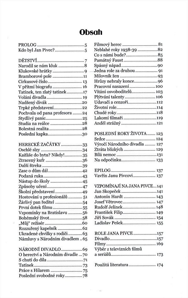 Druhé, rozšířené vydání monografie o dlouholetém herci pražského Národního divadla Janu Pivcovi.