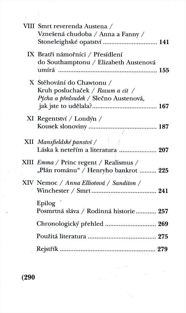 Životopis jedné z nejznámějších a nejoblíbenějších anglických autorek společenských románů. Německá autorka rozebírá jednotlivá literární díla na pozadí skutečného života Jane Austenové. Součástí knihy je i obrazová příloha.