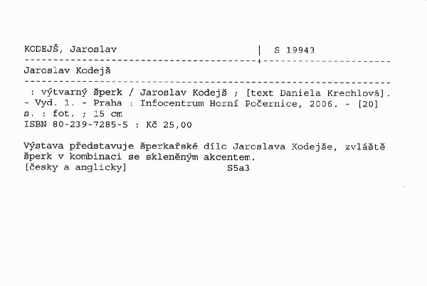 Autor | Jaroslav Kodejš ; [text Daniela Krechlová] |