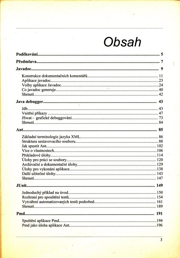 Kniha popisuje skupinu několika nástrojů, které pomáhají při vytváření aplikací v jazyce Java, provázející vývoj softwaru.