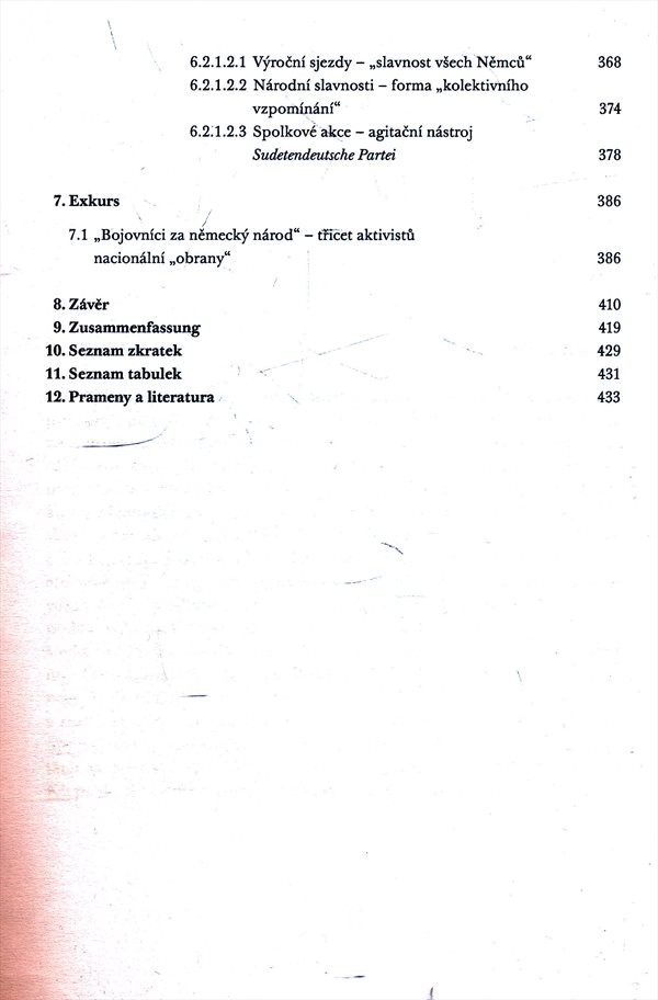 Studie se snaží zmapovat vznik spolku českých Němců Bund der Deutschen a působení sudetoněmeckých nacionálních spolků v meziválečném Československu.