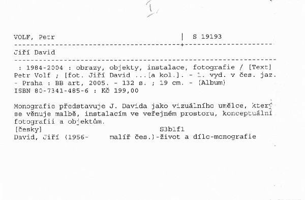 Monografie představuje J. Davida jako vizuálního umělce, který se věnuje malbě, instalacím ve veřejném prostoru, konceptuální fotografii a objektům.