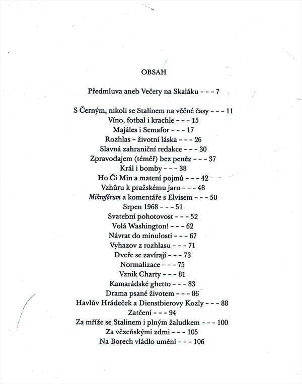 Kniha sleduje Dienstbierovy osudy od začátku studií žurnalistiky na Karlově univerzitě, velká pozornost je věnována jeho práci v Československém rozhlase (působil např. jako korespondent v jihovýchodní Asii a USA nebo v srpnu 1968 se podílel na vysílání rozhlasu zaměřeného proti okupaci), mapuje jeho životním úděl v průběhu normalizace (Dienstbier patřil mezi signatáře Charty 77 a mezi lety 1979-82 byl vězněn) a dostává se na počátek 90. let, kdy Jiří Dienstbier zastával funkci ministra zahraničí svobodného Československa. V textu najdeme Dienstbierovy vzpomínky, vzpomínky jeho přátel i členů rodiny. Fotografie, stručné shrnutí životního běhu této osobnosti, rejstřík.