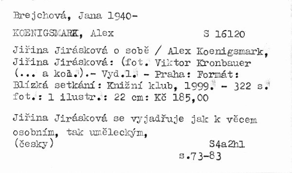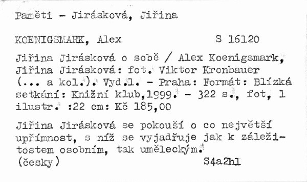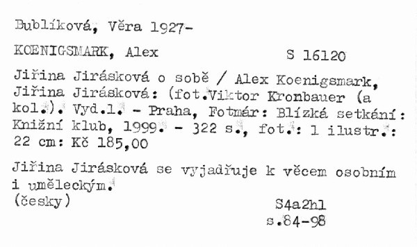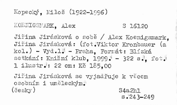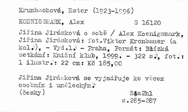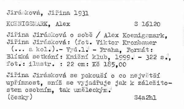 | Autor | Alex Koenigsmark, Jiřina Jirásková ; [fot. Viktor Krombauer] [...a kol.] |