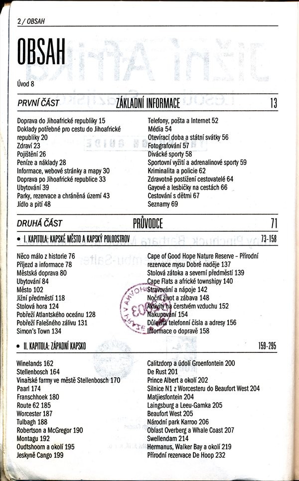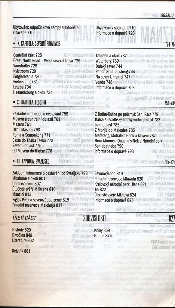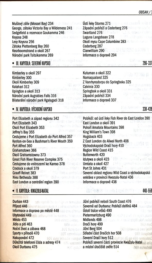 | Obsah OCHu | Průvodce: Státy jižní Afriky (Jihoafrická republika, Svazijsko, Lesotho, Namibie, Botswana, Zimbabwe, Zambie, Malawi, Mozambik, Madagaskar, Komory, Seychely, Mauritius). |