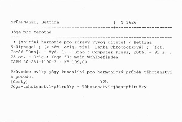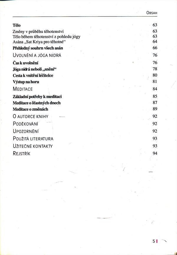 Jedná se o druh jógy, který zahrnuje nejen soubor tělesných a dechových cvičení, ale také meditaci, přičemž základem je správné dýchání. Cviky (ásany) jsou zaměřeny na posílení jednotlivých vnitřních orgánů a částí těla s důrazem pro nalezení duševní rovnováhy, prohloubení vztahu k dítěti a zmírnění nepříjemných těhotenských příznaků. Text je doplněn množstvím instruktážních fotografií a závěrem jsou popsány dvě jednoduché meditace určené nastávajícím matkám.