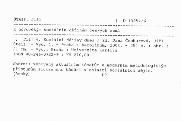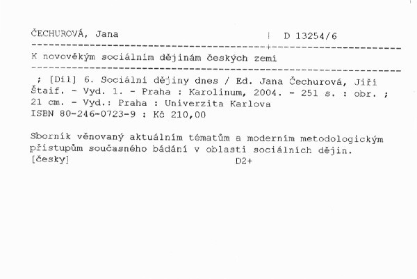 NázevK novověkým sociálním dějinám českých zemí