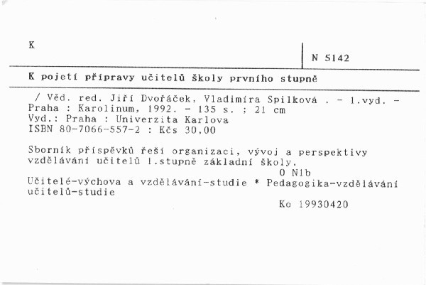 | Název | K pojetí přípravy učitelů školy prvního stupně |
