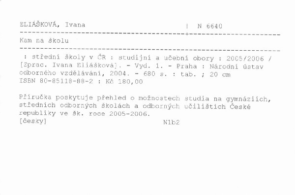Příručka poskytuje přehled o možnostech studia na gymnáziích, středních odborných školách a odborných učilištích České republiky ve šk. roce 2005-2006.