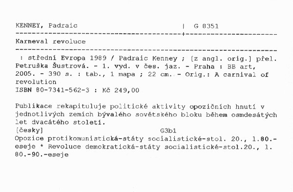 | Podnázev | střední Evropa 1989 |