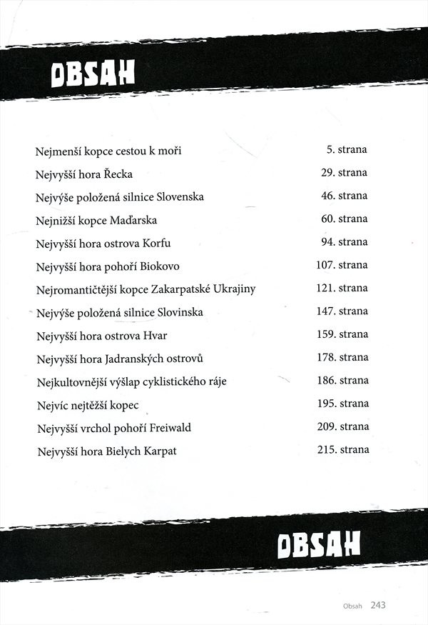 Netradiční cyklistický průvodce popisuje výpravy do hor na cca 30 kopců Evropy. Autor je uskutečnil se svými přáteli v letech 1999 - 2011. Poslední kapitola je věnována českému cyklistickému závodu "Loudání", který je dlouhý 713 km s převýšením 15610 m. Celkově autor najel 5518km.