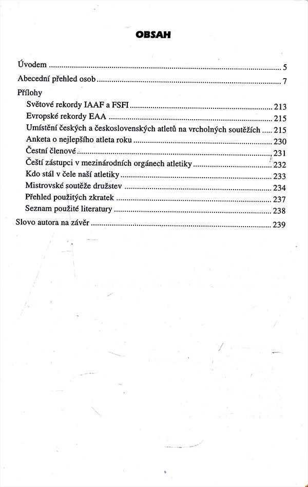 Publikace obsahuje životopisné údaje nejvýznamnějších českých a slovenských atletů.