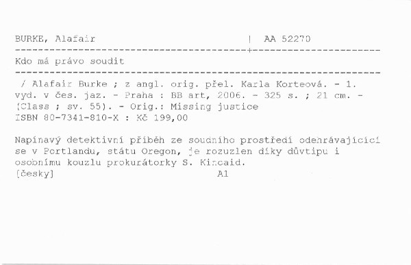 | Autor | Alafair Burke ; [z angl. orig.] přel. Karla Korteová |
