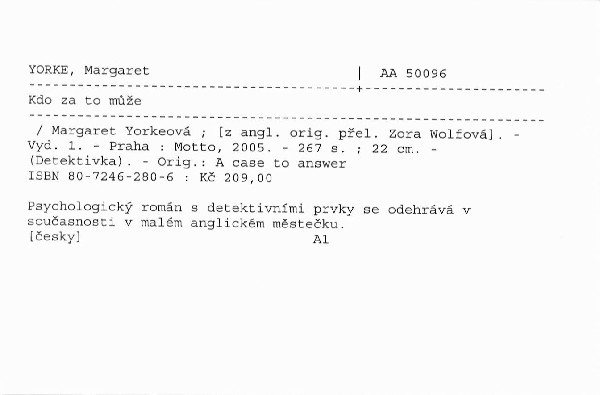 | Autor | Margaret Yorkeová ; [z angl. orig. přel. Zora Wolfová] |