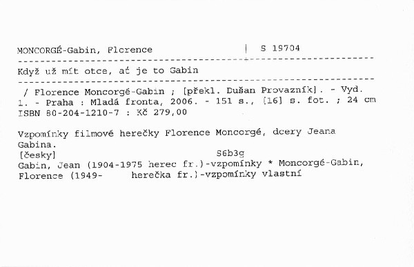 Autor | Florence Moncorgé-Gabin ; [překl. Dušan Provazník] |