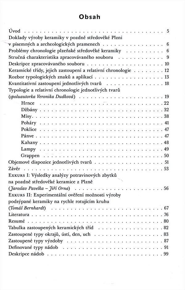 Studie vyhodnocuje výsledky archeologických nálezů keramiky v městě Plzeň. Práce se zaměřuje na vrcholně a pozdně středověké období a sleduje zejména objemové a typologické charakteristiky jednotlivých druhů kuchyňské a stolní keramiky.