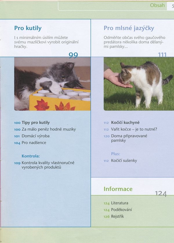 Kočky jsou skvělými společníky. Ve vaší kočce se skrývá šelmička, která se s chutí honí, loví a dovádí. Rozvíjejte její inteligenci a hravost! Bude-li mít možnost bavit se správným způsobem a dopřejete-li jí vhodné vybavení, bude mít i v bytě k dispozici vše, co potřebuje pro správný tělesný a duševní vývoj. Nakladatelská anotace. Kráceno.