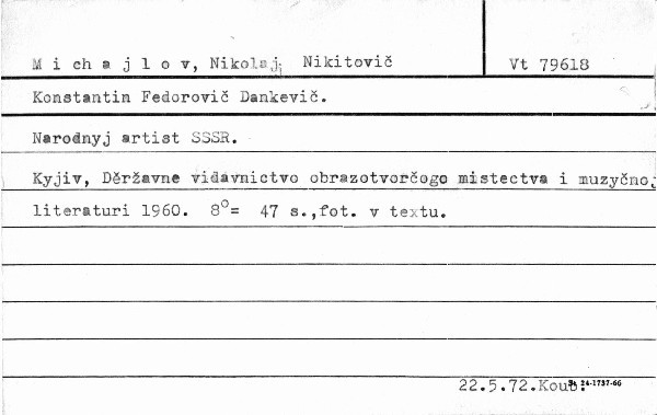 Vydání: Deržavne vydavnyctvo obrazotvorčogo mystectva i muzyčnoji literatury URSR 1960 | Jazyk: ruština | Signatura: VT 79618