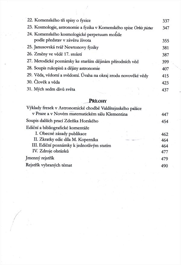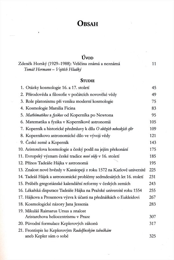Soubor tematicky postupuje od vztahů filosofie a přírodních věd a kosmologie renesančního platonismu, přes dílo Mikuláše Koperníka, jeho recepci v českém prostředí, vědeckou kulturu české renesance až k vědě 17. století. Nakladatelská anotace. Kráceno.