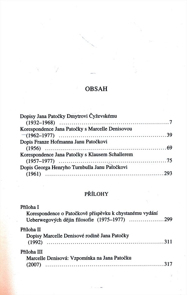| Název části | [Korespondence Jana Patočky s Dmytrem Čyževským, Marcelle Denisovou, Franzem Hofmannem, Klausem Schallerem a Georgem Henrym Turnbullem] |
