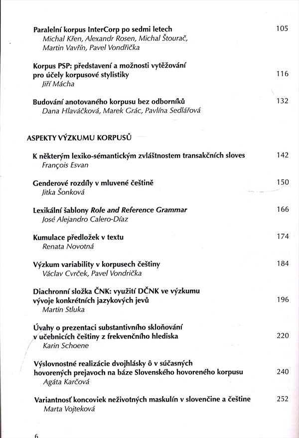 Příspěvky přednesené na konferenci Korpusová lingvistika Praha 2011 se věnují aspektům výstavby korpusů různého druhu, českých i zahraničních, jazykově obecných i specifických.