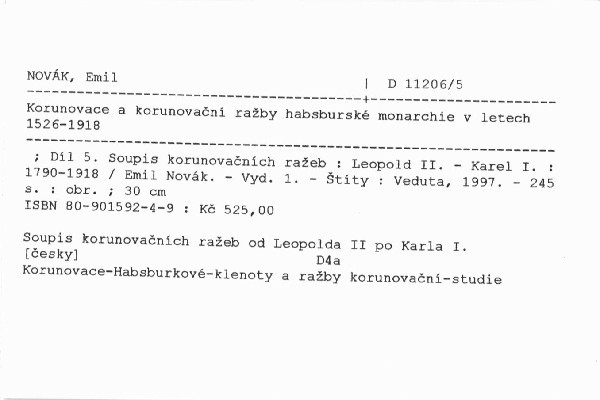 | Název části | Soupis korunovačních ražeb : Leopold II. - Karel I.; : 1790-1918 |