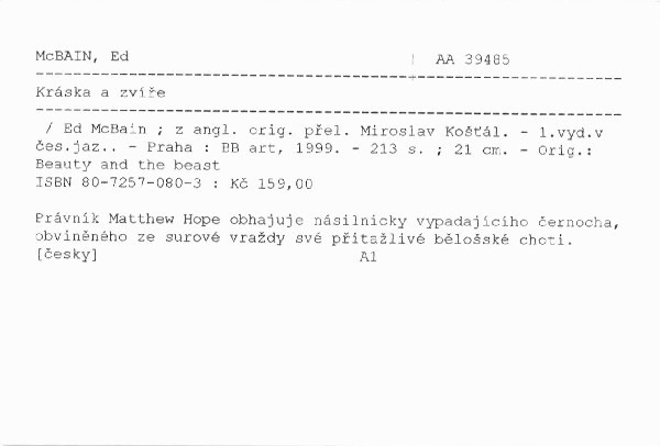 | Autor | Ed McBain ; z angl. orig. přel. Miroslav Košťál |