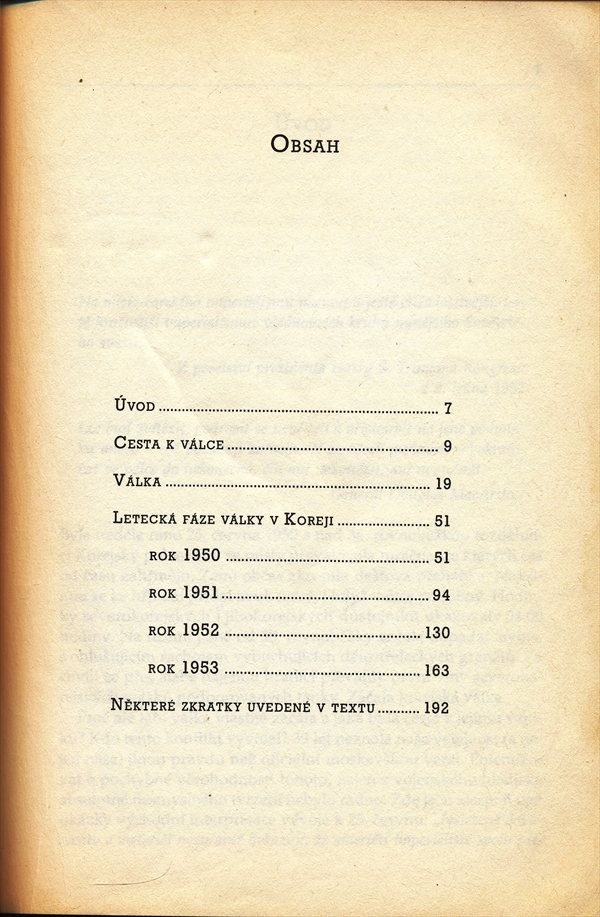 V úvodu autor poměrně obšírně popisuje korejskou válku v obecné rovině, mapuje důvody jejího vzniku, geopolitické souvislosti a samotný průběh konfliktu. Následuje stěžejní část knihy, která je zaměřena na válku ve vzduchu. Autor postupuje chronologicky a dělí leteckou válku na čtyři fáze po jednotlivých letech. Popis je výstižný a čtivý, ale poněkud zde chybí přehlednější rozřazení letadel podle typů a bojové úspěšnosti. Rovněž absentuje jakýkoliv fotografický doprovod, který je nahrazen pouze ilustracemi používaných strojů.
