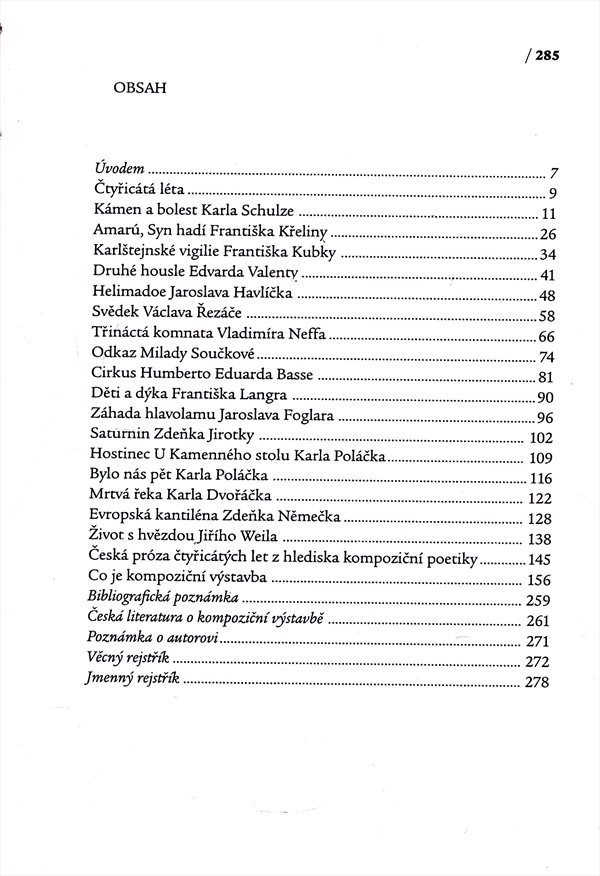 Kniha spojuje autorovy studie zabývající se tvaroslovným vývojem české prózy čtyřicátých let 20.století.