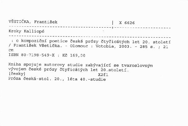 | Podnázev | o kompoziční poetice české prózy čtyřicátých let 20. století |