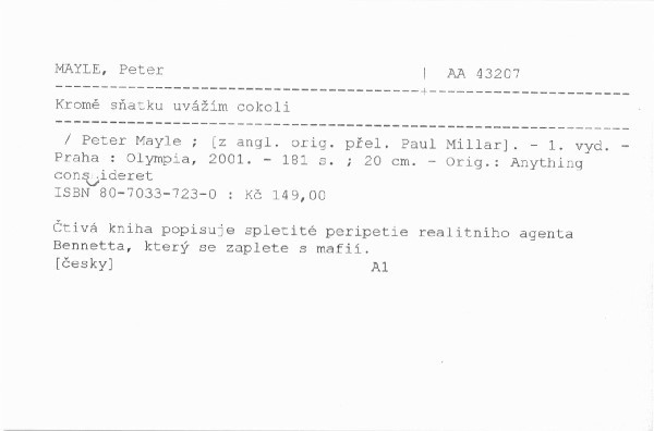 | Autor | Peter Mayle ; [z angl. orig. přel. Paul Millar] |